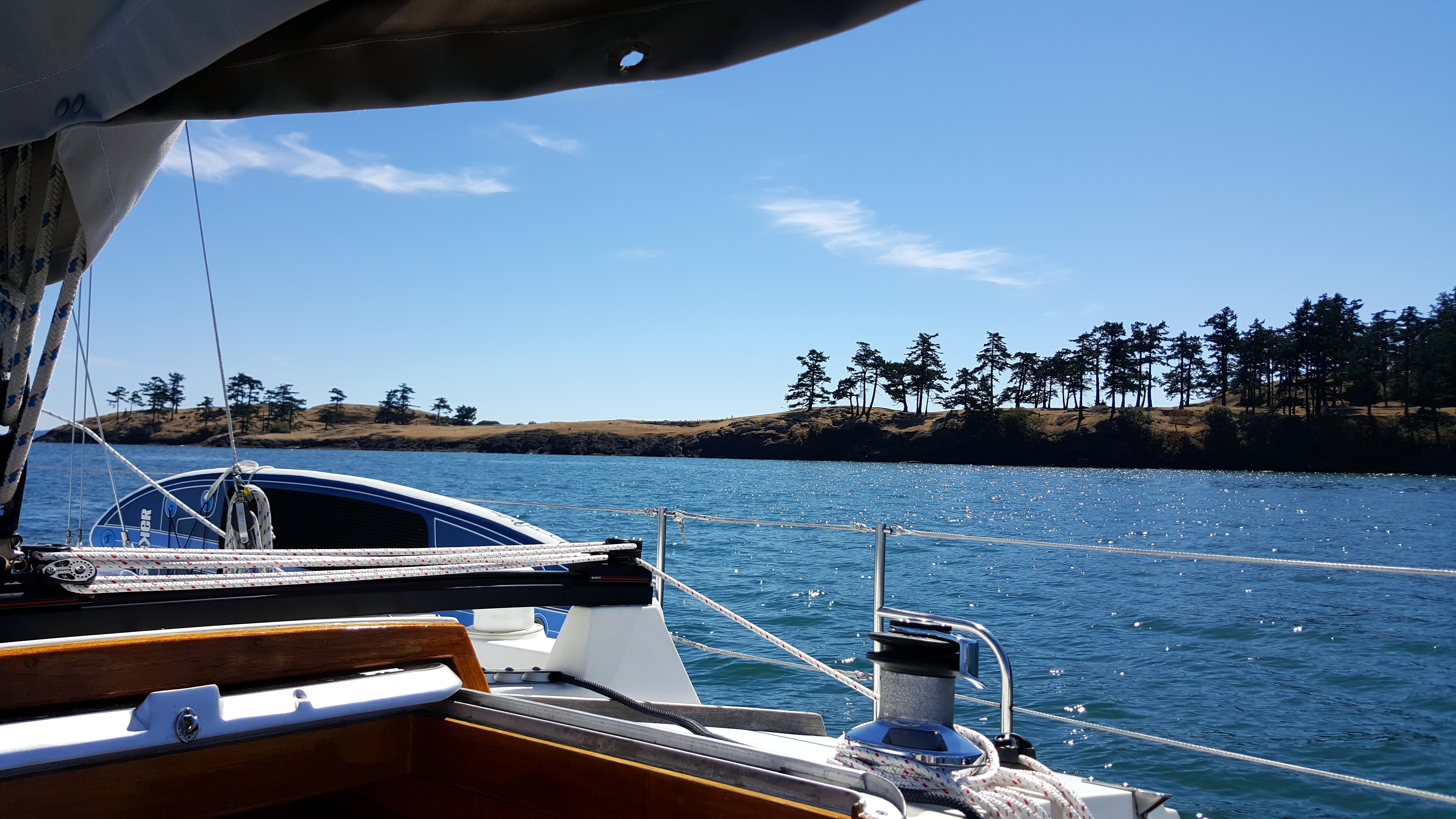 Just thinking about this trip again is relaxing. After several long years of not being able to get away for more than a couple of days at time I finally was able to take a real vacation. It took a bit of prep and the boat had to be shifted from race to cruise mode. I took off solo early on a Friday morning for the long motor north to meet friends in Echo Bay on Sucia Island. No chance to sail as the wind was light or always on the nose, of course. Pulled into Echo Bay and dropped the big delta anchor after a bit of discussion with nearby friends on how these things work! Right, I'm not the most knowledgeable when it comes to anchoring. Doing it solo ups the pressure a bit but all went well and that was the start of a long week of de-stressing. The weather was great. Some wind, warm days, cool nights, sunny almost every day and not all that crowed despite it being the last week before Labor Day.
