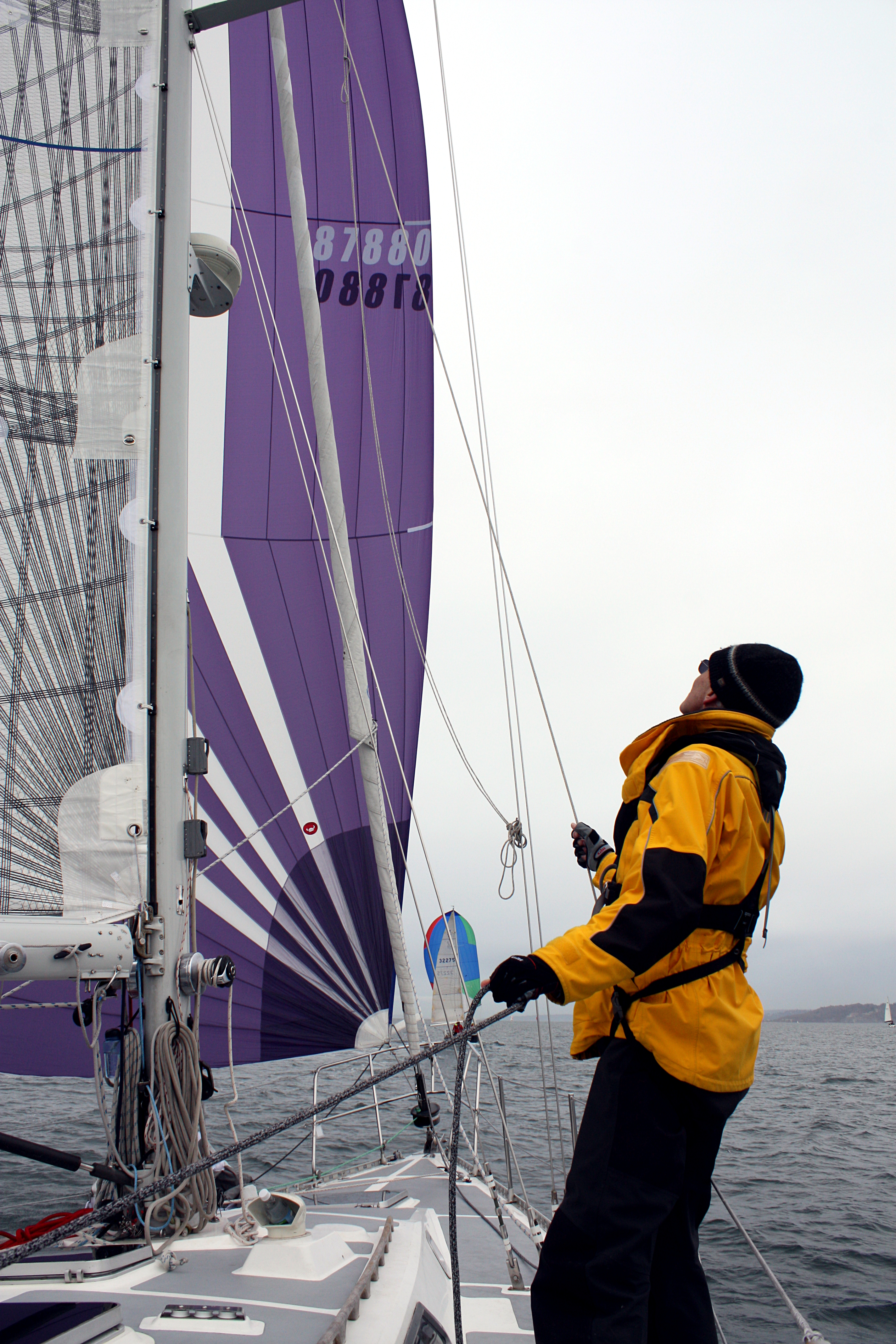 We went out feeling pretty good. We grabbed a second place in our 5th and final race of the Shilshole Bay Yacht Club's Snowbird series. It was a great day for a winter race. Good wind, great course (we went over to Blakely Rock off of Bainbridge Island), the rain was very light and the competition was good. We had a good start although it was dicey being on port tack with the big Beneteau coming in on starboard but in the end the Bene was in a no win situation and all of us port tackers won out. We played it conservatively at the Rock turn and let the Dehler 39 Deltane get inside us. That allowed us to have fun all the way downwind to Meadow point where we were side by side most of the time. They pulled ahead but we slipped inside at the leeward mark and made it to the line a bit ahead. The crew all did well today and it shows we are starting to click and get smarter as a team. Thanks to SBYC for putting on the series. A big thanks to my friends that show up for the fun and games.