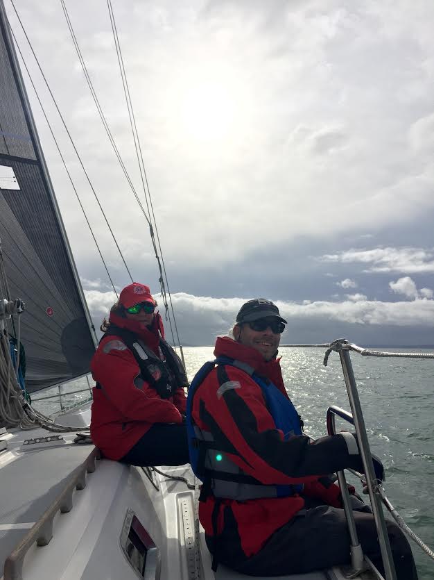 We had a great start thanks to some nice crew work. We struggled a bit to get the big Nordic 44 moving in the light air and we're still learning the trim on the new #1. It was a good day to let everyone work the boat and figure things out so that is what we did. There were two downwind legs so the foredeck crew got a work out. In hindsight I should have put the #1 up with the swivel so we could have roller furled it between legs. Lesson learned.