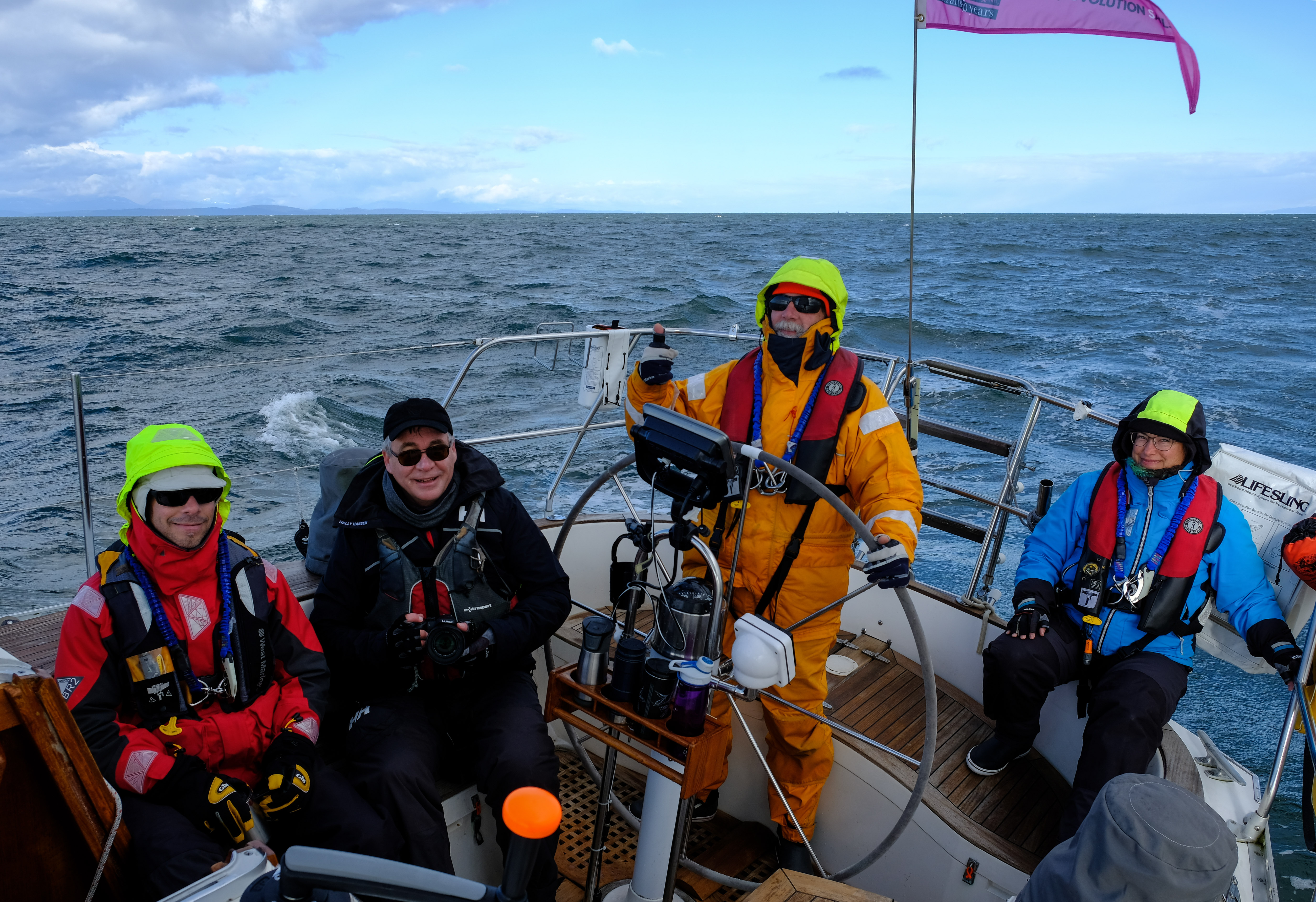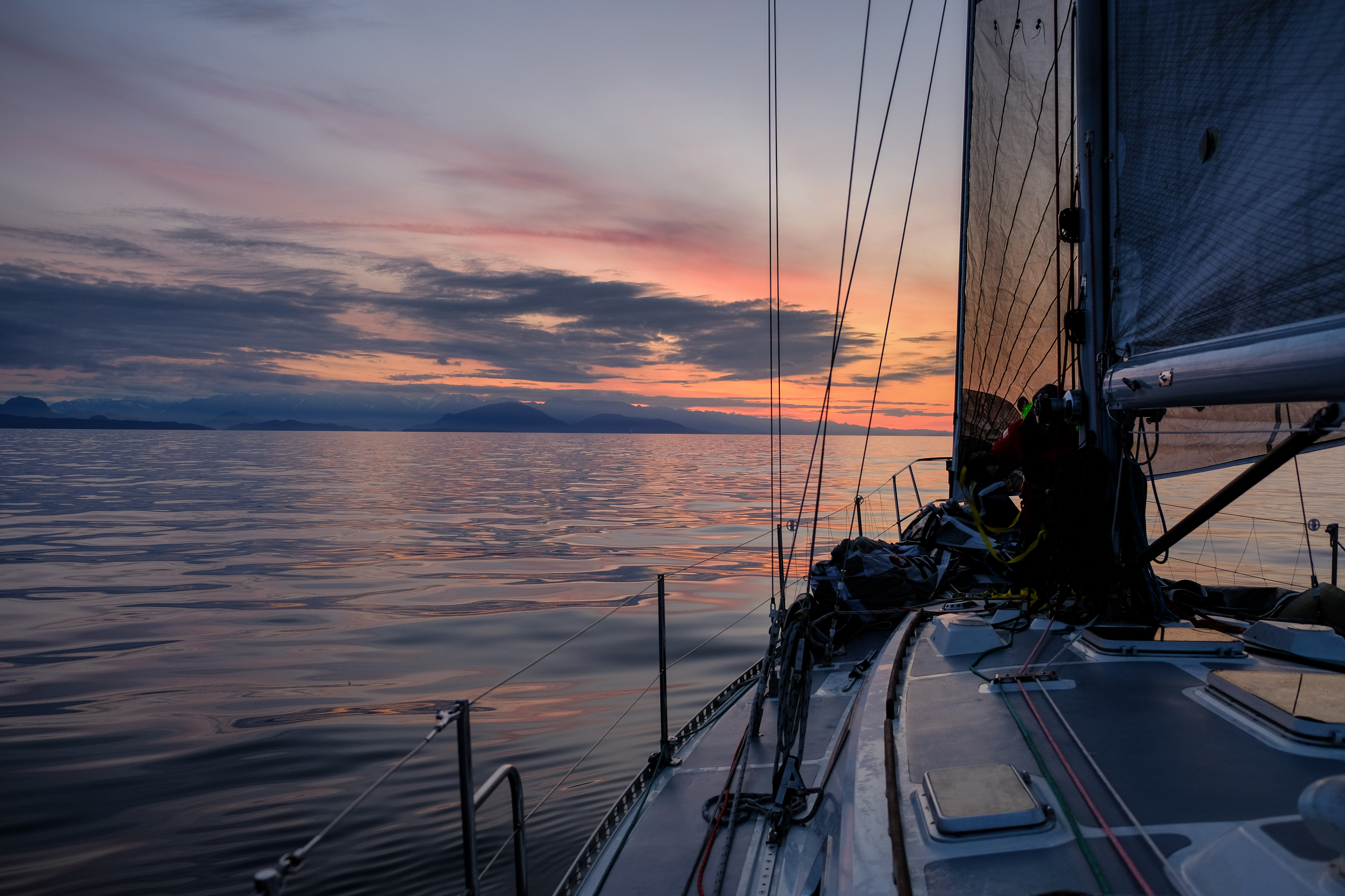 I went below to get some rest and when I came back up things had changed dramatically. The wind was gone. Completely gone. The crew had set the drifter and we did just that for a few hours watching the sunrise from the middle of the Georgia Strait. Looking at the tracker data we could see Lodos, a J109 from Seattle, to the north, Dominatrix (a class 3 boat the popped up from nowhere it seemed) and Kraken to the south. All of us trying to find breeze to escape on.